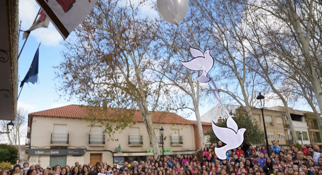 Centenares de alumnos y alumnas, en representación de los cuatro centros educativos de Argamasilla de Alba, se han concentrado este jueves 30 de enero en la Glorieta, convocados por los propios centros y el área de Educación del Ayuntamiento con motivo del Día Escolar de la No Violencia y la Paz y bajo el lema: “Un niño, un profesor, un libro y un lápiz pueden cambiar el mundo”.