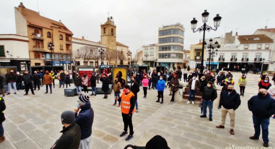 Entre 150 y 200 hosteleros, y pequeños empresarios de Tomelloso de distintos sectores se han vuelto a concentrar este domingo para dar visibilidad a su situación, desesperada en muchos casos, tras las medidas restrictivas aplicadas en Castilla-La Mancha desde el pasado 14 de enero y que han vuelto a ser prorrogadas el pasado 28 de enero, que suponen el cierre de la hostelería, gimnasios y otros establecimientos no esenciales.