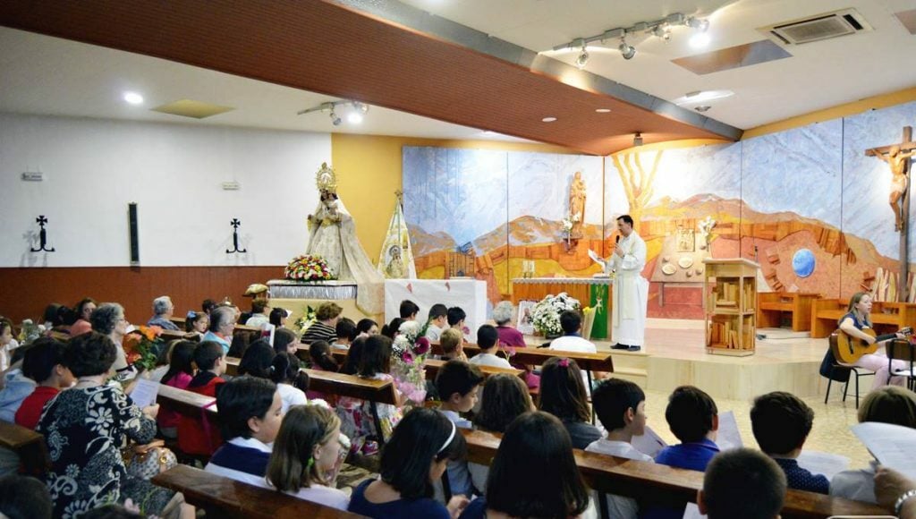 Alrededor de 120 niños y niñas de catequesis de la parroquia de Santo Tomas, pasaron una tarde con la Virgen de las Viñas. Aprovechando la presencia de la Patrona de Tomelloso en la parroquia, los pequeños acompañados por sus catequistas le cantaron e hicieron una ofrenda florar a la Virgen de las Viñas.