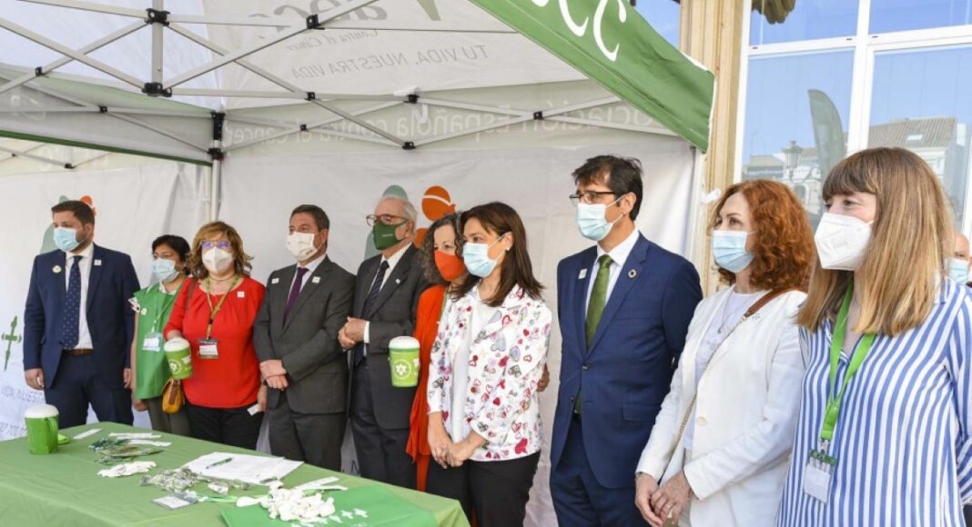 El presidente de la Diputación de Ciudad Real, José Manuel Caballero, junto al presidente del Gobierno regional, Emiliano García-Page, la Subdelegada del Gobierno en Ciudad Real, María Ángeles Herrero, y la alcaldesa de la capital, Pilar Zamora, han colaborado con la cuestación que la Asociación Española contra el Cáncer ha realizado hoy de forma física en diferentes puntos de la ciudad.