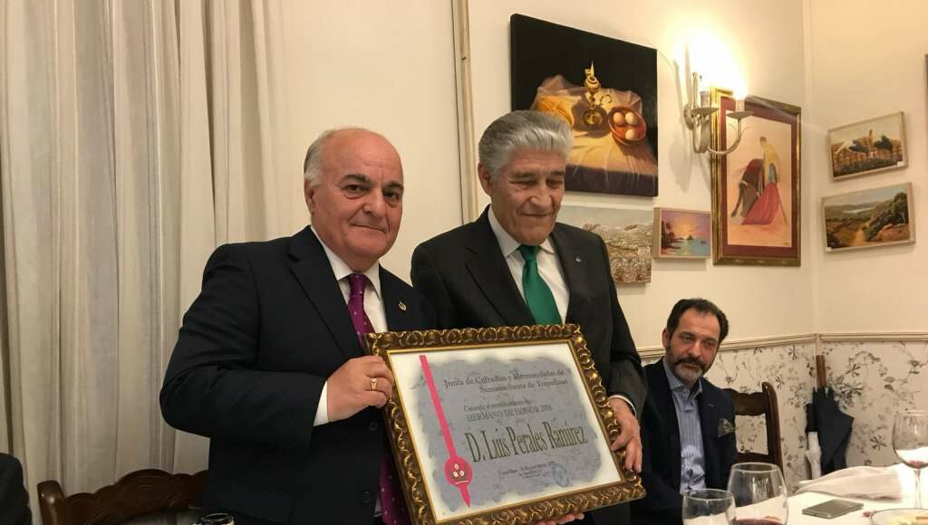 En el transcurso de la tradicional comida Comida de Hermandad, organizada por la Junta de Cofradías y Hermandades de Semana Santa, se ha procedido a la entrega a Luis Perales Ramírez, el nombramiento de Hermano de Honor de la Semana Santa 2018.