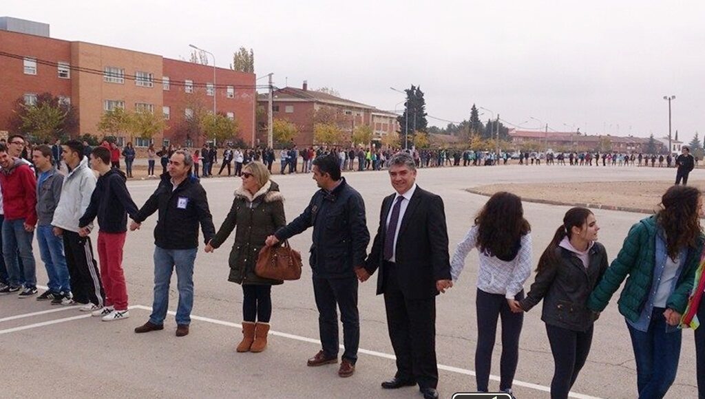Millar y medio de personas formaban una cadena humana que simbolizaba la unión de toda la sociedad contra esta lacra social, además de dar lectura a unos manifiestos y realizar un homenaje a las víctimas. El Centro de la Mujer de Tomelloso pretendió con esta actividad mostrar el rechazo colectivo que han representado los alumnos a través de esta cadena humana hacía la violencia de género y el apoyo a las víctimas de esta lacra