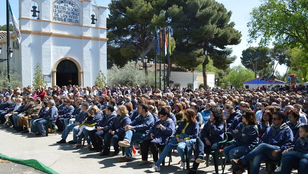 Miles de personas —cerca de treinta mil— están participando en la Romería de la Virgen de las Viñas. Este domingo primaveral ha hecho que los tomelloseros y visitantes acudan masivamente al Santuario de Pinilla para honrar a su Patrona y disfrutar de las tradiciones.
