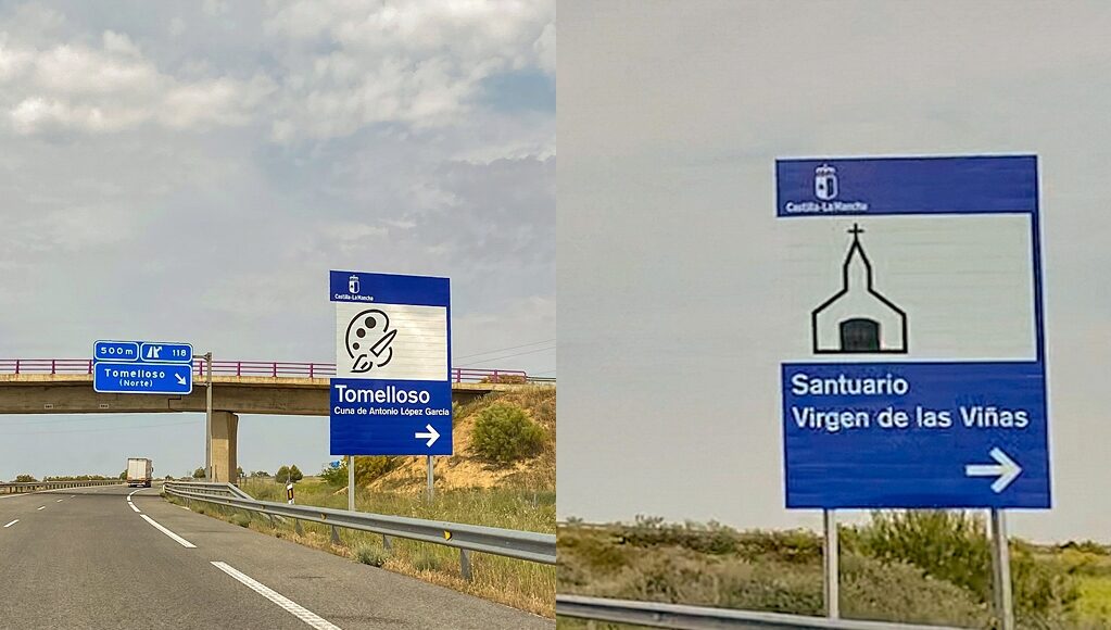 En un caso, en el enlace con la carretera de Pedro Muñoz, se indica la salida hacía una gran zona verde como es el Santuario de Pinilla que acoge a finales de abril la tradicional Romería en honor a la Patrona, declarada de Interés Turístico Regional y por otro lado, en la entrada norte en el acceso a la CM-400, el interés cultural de Tomelloso, patria chica de numerosos escritores y pintores reconocidos a nivel nacional, todos ellos capitaneados por el universal Antonio López García.