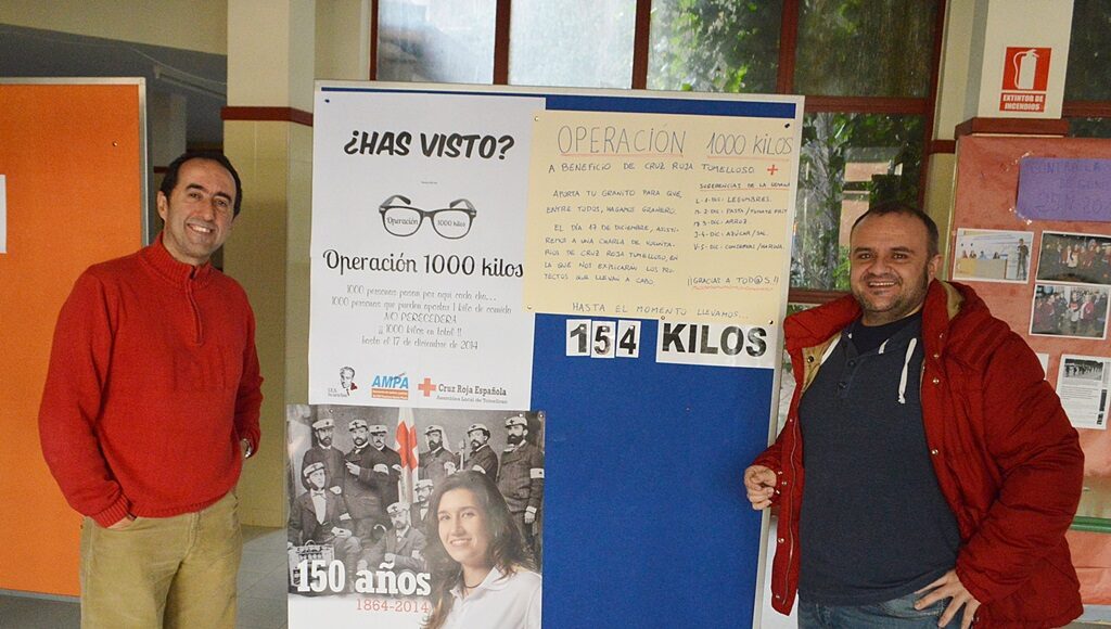 Por el vestíbulo del instituto pasan diariamente mil personas: alumnos, profesores, personal laboral, familias, comerciales, etc…. Eso les llevó a plantearse el reto de conseguir 1.000 kilos de alimentos no perecederos para Cruz Roja entre el 1 y el 17 de diciembre. Un kilo por cada una de esas mil personas representa una tonelada de comida para ayudar quienes más lo precisen.