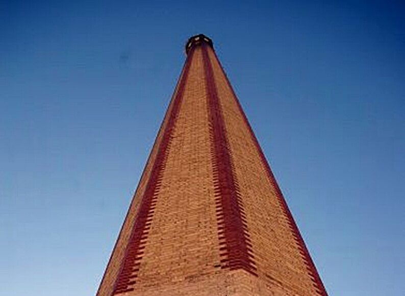 Los sistemas iniciales de destilación del vino requerían grandes chimeneas situadas junto a las torres de destilación que servían para dar salida al humo de las calderas de carbón o leña que suministraban el calor necesario para el proceso. La altura de las chimeneas permitía la salida del humo sin necesidad de ventiladores ni elementos mecánicos por lo que eran necesarias alturas importantes superiores a los 20 metros. Las de menor altura servían para procesos secundarios o pequeños aparatos que también producían holandas.