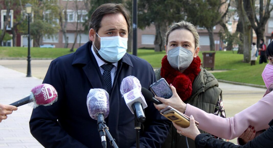 En el Parque de la Concordia de Guadalajara, minutos antes de reunirse con el colectivo de Down en Guadalajara, y acompañado de la presidenta provincial del partido, Ana Guarinos, el presidente de los ‘populares’ castellanomanchegos ha asegurado que «tiene poco sentido que se pueda votar siendo positivo por COVID en unas elecciones y que no se pueda ir a un Centro de Día».