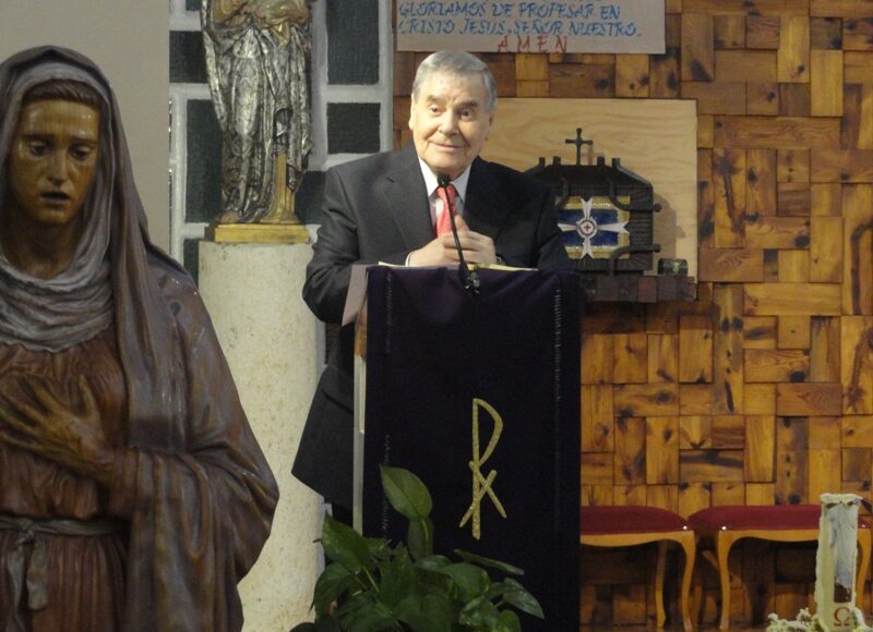 Don Esaú, al inicio del pregón, señaló sentirse gozoso por estar entre amigos y rejuvenecido, a pesar de que el tiempo le haya borrado el nombre de las calles. Ha destacado el buen estado de conservación de la iglesia, hermosa y limpia; fijándose en el retablo, que aún mantenía su originalidad. El sacerdote ha disertado sobre la figura humana de Jesús, la psicología humana de Cristo, a partir de los textos del Evangelio, arrancando con la frase de San Pablo, Jesús es semejante en todo a nosotros, salvo en el pecado. Ha analizado las reacciones, anhelos, deseos y miedos de Jesús de Nazaret, el hombre.