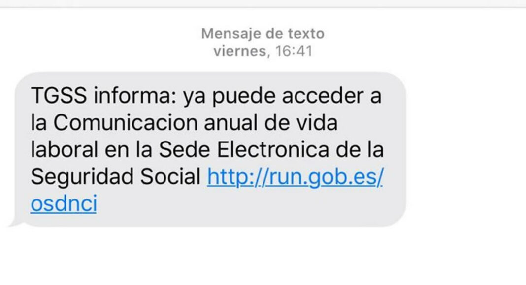 Este SMS tiene incorporado un enlace que lleva a la página de la Sede Electrónica en la que se encuentra el Servicio de Comunicación de Vida Laboral y Bases de Cotización a los trabajadores.