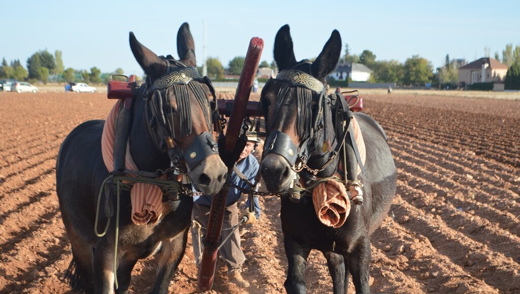 Poco después de las nueve de la mañana, Nicomedes Marquina, portavoz de la Asociación organizadora comenzaba a repartir las semillas, al voleo, como se hacía antaño. Sobre un barbecho perfecto y labrado como un jardín. La simiente la van tapando dos yuntas de mulas. Los gañanes manejan el timón del arado y los ramales con precisión de delineantes; las caballerías obedecen casi siempre y el público contempla la faena. Como cuenta Nicomedes, el sembrador, “en octubre, echa pan y cubre”.
