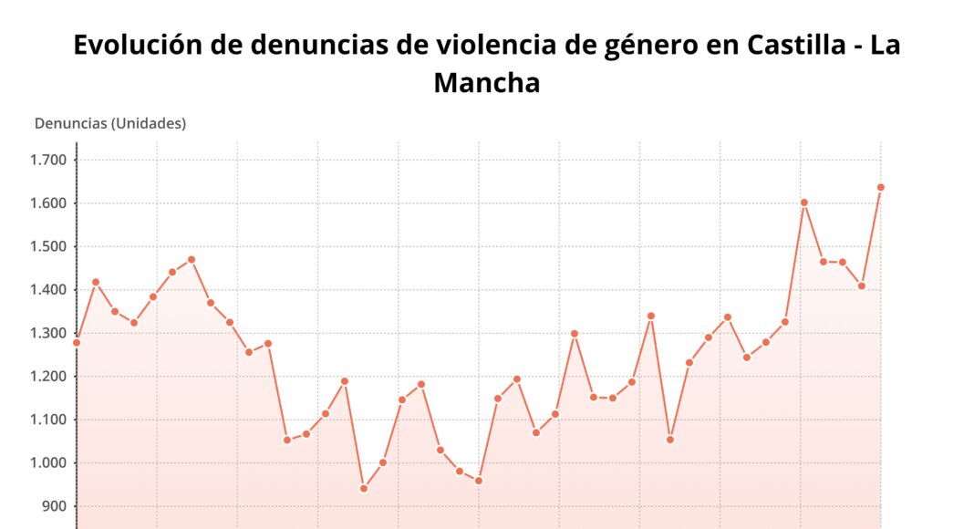 Las denuncias por violencia de género presentadas en los órganos judiciales de Castilla-La Mancha entre el 1 de julio y el 30 de septiembre de 2019 aumentaron un 2,2 por ciento, registrándose 1.637 denuncias frente a 1.602 del mismo periodo de 2018.