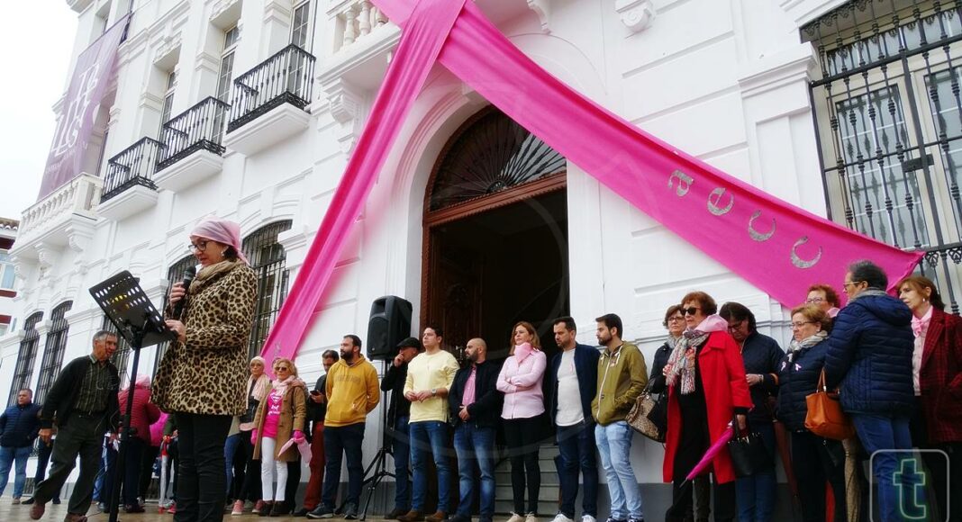 La plaza de Tomelloso ha acogido este viernes 19 de octubre un acto simbólico contra el cáncer de mama. Así, a las 12 del mediodía, con el cielo plomizo, ha tenido lugar una concentración a las puertas del consistorio que ha contado con la participación de representantes de los Grupos Municipales, colectivos de mujeres afectadas como la Asociación Española contra el Cáncer y las Supernenas además de trabajadores municipales y vecinos. La puerta principal del ayuntamiento estaba decorada con una gran lazo rosa.