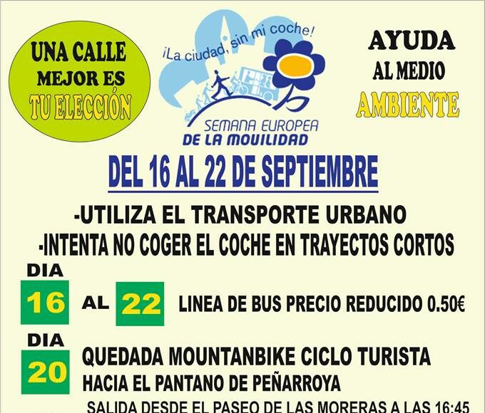 Durante esos días, el bus urbano tendrá un precio reducido de 0´50 € con el objeto de fomentar su uso y dar a conocer a la población las mejoras introducidas en el servicio, todo ello para alcanzar uno de los objetivos de la Semana de la Movilidad como es el uso del transporte público en detrimento del vehículo privado.