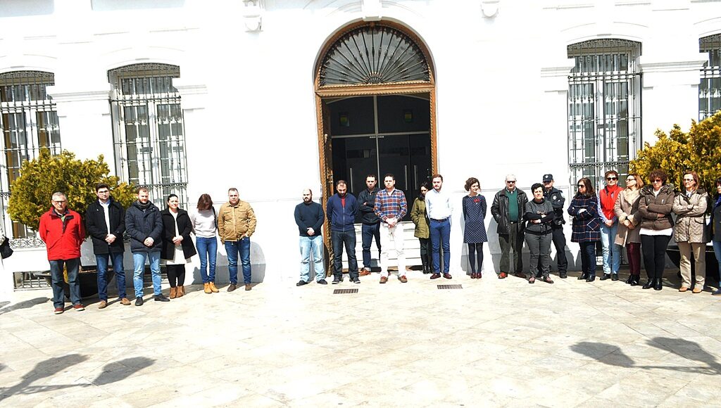 Representantes de los Grupos políticos, funcionarios municipales y ciudadanos se concentraron este miércoles a mediodía en la fachada principal del Ayuntamiento, convocados por el Consistorio y la Federación Española de Municipios y Provincias (FEMP), para condenar los atentados del martes en Bruselas y mostrar su solidaridad con las víctimas, familiares y heridos.