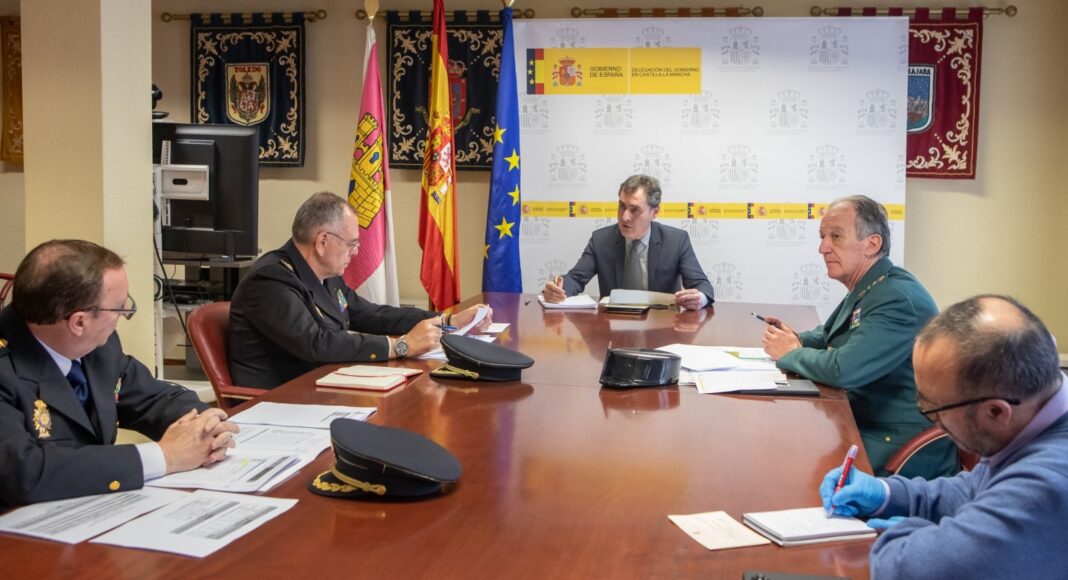 Tierraseca ha mantenido una reunión de coordinación de las actuaciones frente al COVID-19 con el jefe superior de Policía de Castilla-La Mancha, Félix Antolín, y el jefe de zona de la Guardia Civil en Castilla-La Mancha, el general de División Francisco Esteban Pérez, en la Delegación del Gobierno.