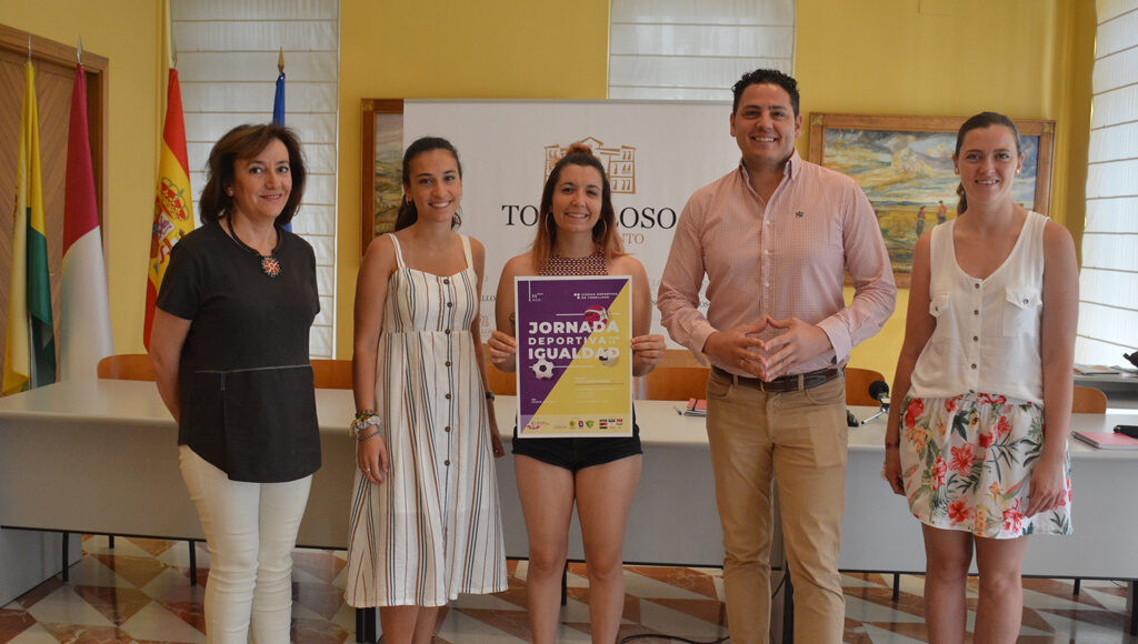 El concejal de Deporte, Iván Rodrigo, y la concejala de Igualdad, Isi Serna, han presentado este jueves la Jornada Deportiva por la Igualdad que, organizada por la Asociación Feminista Las Trece Rosas, con la colaboración del área municipal de Deportes, el Centro de la Mujer, el Club Voleibol Tomelloso y el Atlético Tomelloso, se va a celebrar este próximo sábado, 11 de agosto, en las instalaciones de la ciudad deportiva. Han estado también en la presentación Esther Ramírez y Mari Navarro, en nombre de la asociación organizadora y Ana Díaz, en representación del Club Voleibol Tomelloso.