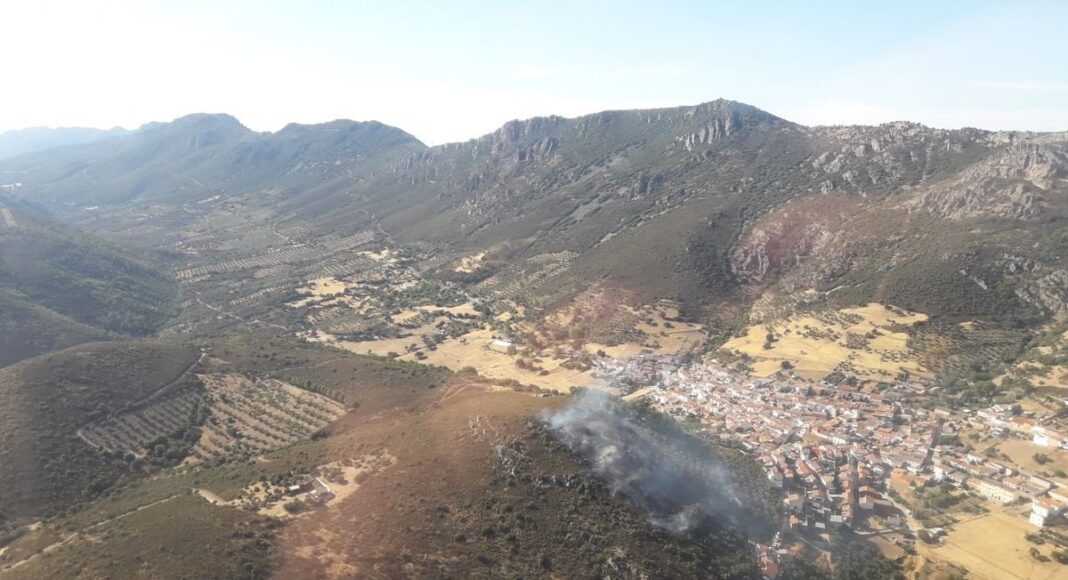 Un total de quince medios –cuatro de ellos aéreos– y 61 personas trabajan en las labores de extinción de un incendio declarado a las 17.25 horas de este lunes en el término municipal de Solana del Pino (Ciudad Real).