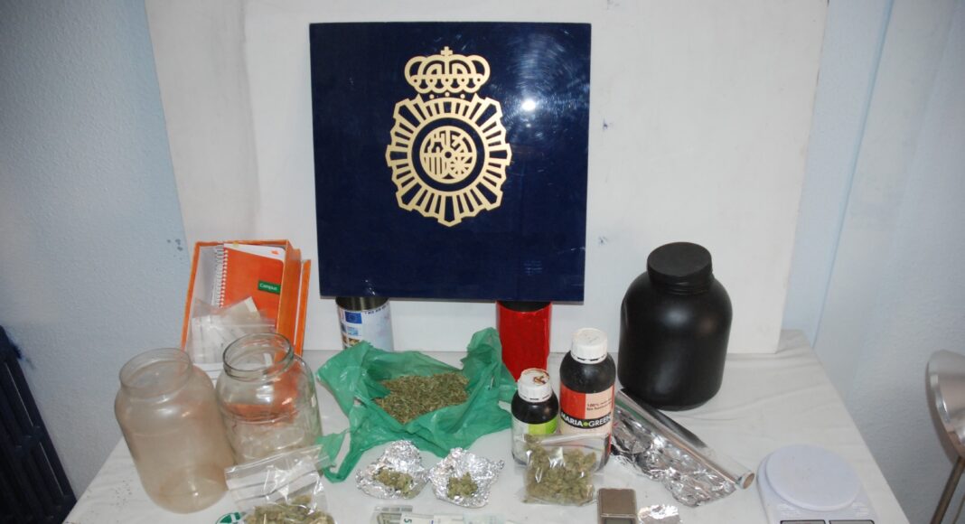 En el registro efectuado en el domicilio de estas dos personas se incautaron 167 gramos de marihuana, una balanza de precisión, un aparato para picar con restos de marihuana, un rollo de papel plata, un rollo de hilo de alambre de color verde, cuatro bote de plástico grandes con restos de marihuana en su interior, una agenda con anotaciones de la actividad ilícita, una caja registradora con dinero de cambio en su interior, dos botes de fertilizantes y una navaja de barbero.