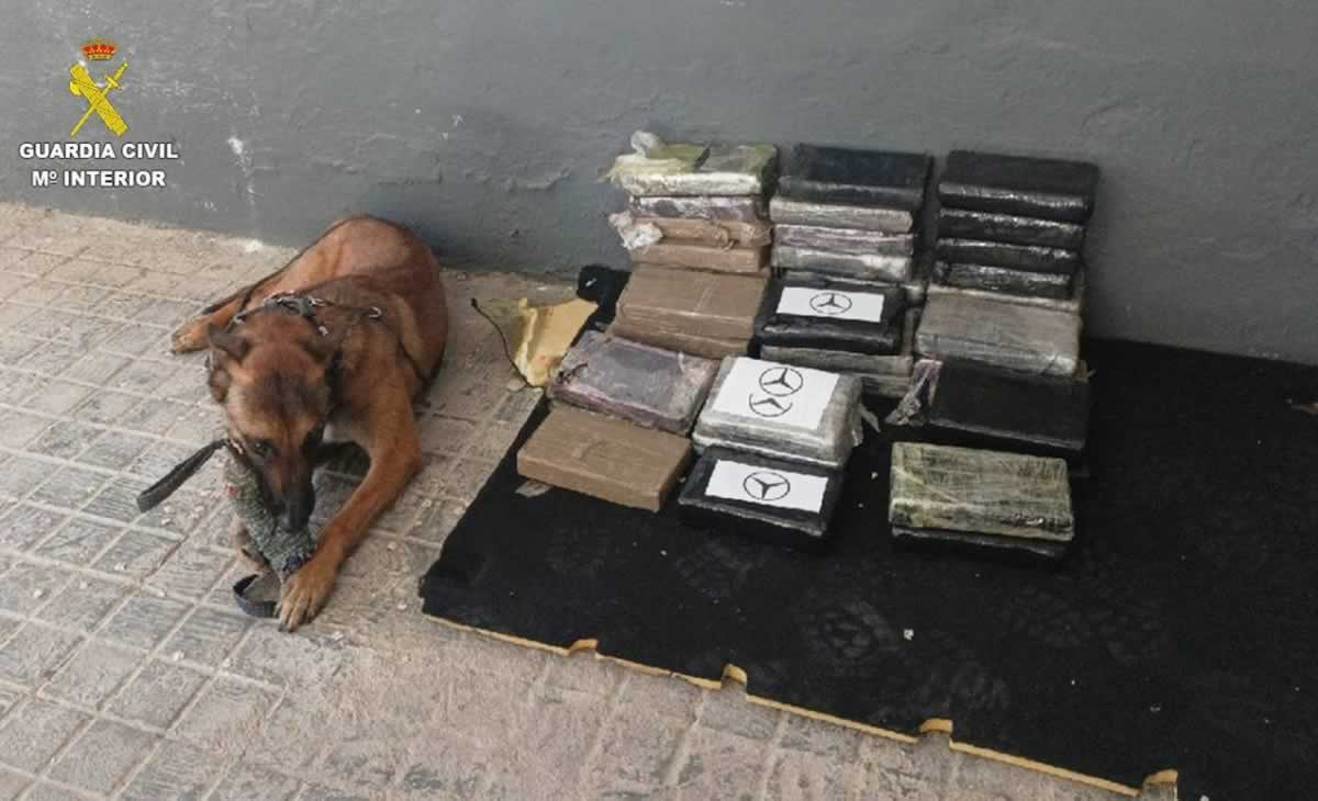 Una vez abierto completamente el hueco oculto, se hallaron 40 paquetes rectangulares de diferentes tonalidades —verdoso, marrón y negro— que contenían una sustancia que dio positivo en cocaína tras la realización del narcotest. El peso total alcanzó los 45,6 kilogramos, si bien será la Delegación de Sanidad la encargada de determinar el peso exacto y la pureza de la droga.