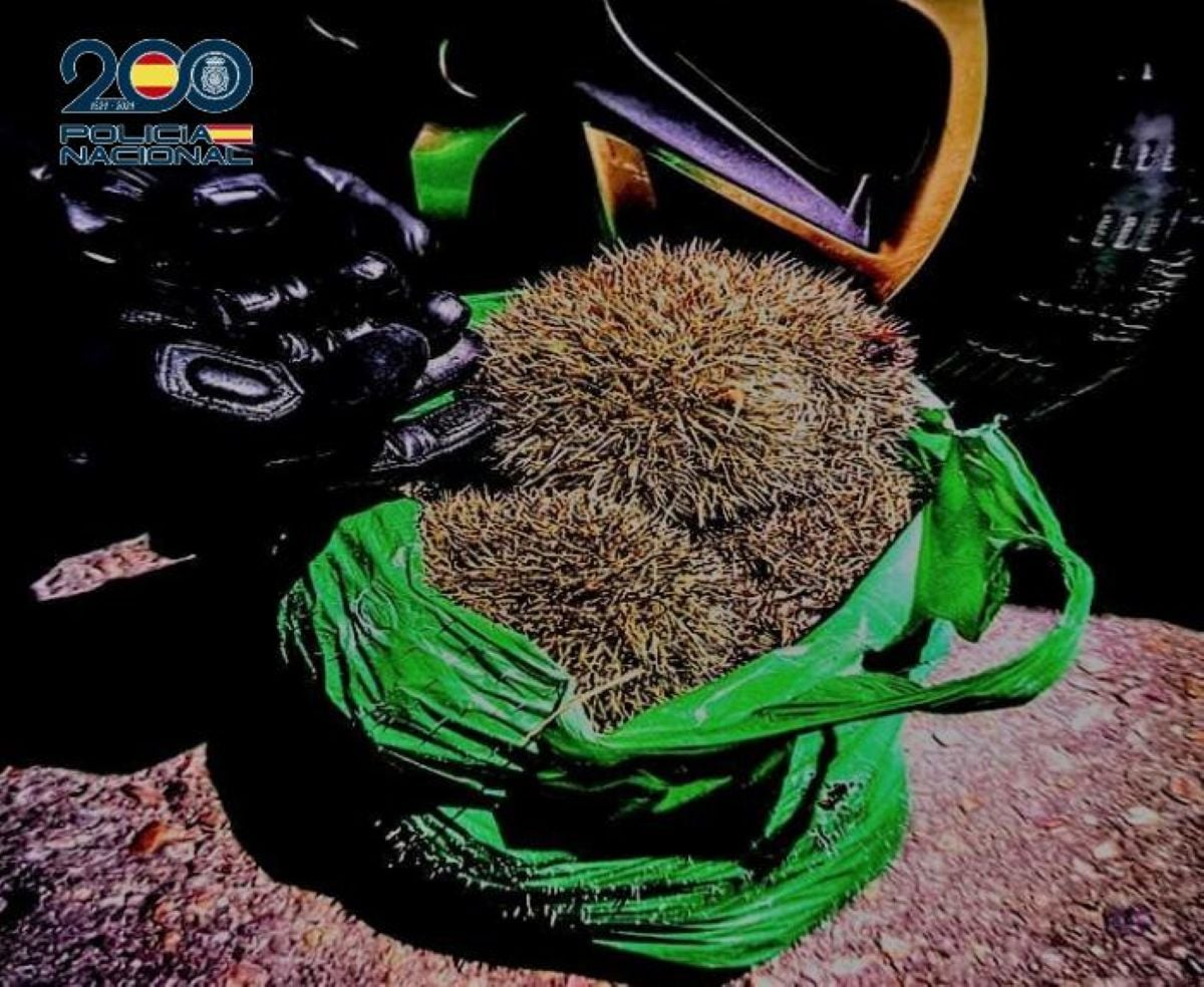 La Policía Nacional y la Policía Local interceptan un coche con erizos gravemente lesionados y un perro en condiciones inadecuadas