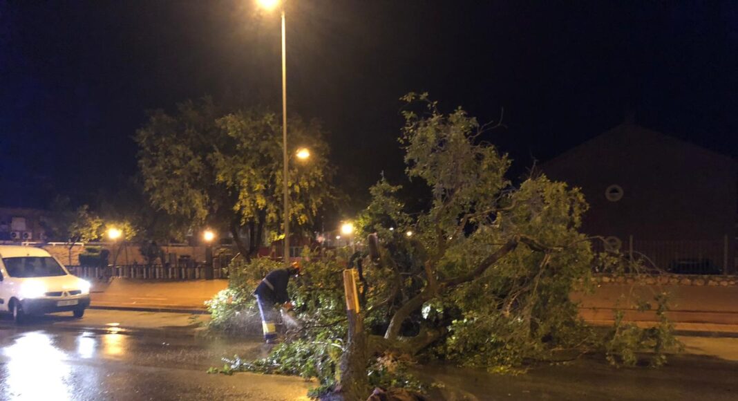 La tormenta ocasionó la caída de árboles sobre varios vehículos en la Avenida Pablo Iglesias, Avenida de la Constitución y calle Tomás Tapia.En la Avenida del Deporte también se registraron árboles caídos en la vía pública así como en la Avenida de las Bodegas donde cayó un árbol junto a un depósito de gas.