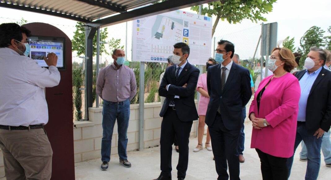 El presidente de la Diputación de Ciudad Real, José Manuel Caballero, junto al alcalde de Campo de Criptana, Santiago Lázaro, y la delegada de la Junta, Carmen Olmedo, han inaugurado este viernes el nuevo parking de autocaravanas con el que cuenta la localidad.