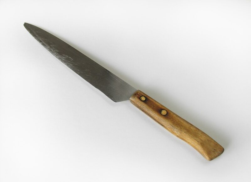 Ella sin contestar se le acercó y le propinó un puñetazo en las partes blandas, ya que no alcanzaba a darle una patada. Del golpe se desplomó al suelo cayendo sobre la espalda. Aprovechando que su hombre estaba en el suelo, la abuela le puso la punta del cuchillo en la nuez.