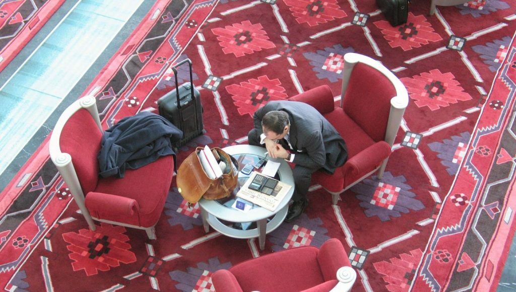 El albergue, a pesar de pertenecer a una gran cadena, era encantador. Mantenía un aspecto elegante pero venido a menos, una suerte de decadencia amortiguada por el espesor de la moqueta. Uno se imaginaba que en cualquier momento aparecería Braulio, el ínclito vinatero, dado palmadas en los hombros y convidado a café. Parecía rescatado, el hotel,  de las mientes pavonianas. El sitio donde, en sus escritos, se albergan los viñeros calaveras en sus escapadas matritenses.