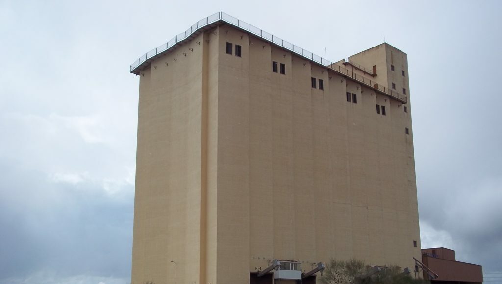 El que está ubicado junto a la Estación de Cinco Casas es uno de los mayores de España, pues en su parte más elevada tiene 50 metros de altura. Hay opiniones de todas las clases, y muchas de ellas dicen que estos edificios son feos, monótonos, de líneas rectas y con pocos adornos. A nosotros nos gustan pues sabemos del gran servicio que prestaron para normalizar el abastecimiento de un producto de primera necesidad como lo es el pan en una época difícil para gran parte de la población. En los años de gran producción y excedentes de otros cereales se utilizaron estos silos para comprar parte de la cosecha y almacenarla, evitando así el hundimiento de los precios. Pero su uso principal era el almacenamiento de trigo.