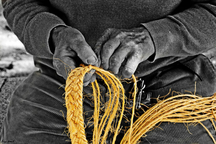 El trayecto duraba algo más de una hora, hasta que llegaban a una parcela de monte bajo y pastos que el abuelo tenía arrendada, y donde tenían un pozo y una choza arreglada en torno a un tapial, vestigio de alguna antigua construcción. Una vez acomodados dejaban su rebaño de herbívoros domésticos al cuidado de los perros y comenzaban a trabajar el esparto para hacerlo flexible y manipulable, al tiempo que el experimentado abuelo iba enseñándole al joven Apolonio los secretos del trenzado del material, labor denominada «pleita». Al atardecer regresaban al pueblo y mientras que el resto de la familia ordeñaba los animales y preparaba los quesos, abuelo y nieto continuaban trabajando, elaborando cinchas para los quesos, cuerdas, fundas de botellas, serijos, cestos, y toda clase de artículos de esparto y pita.