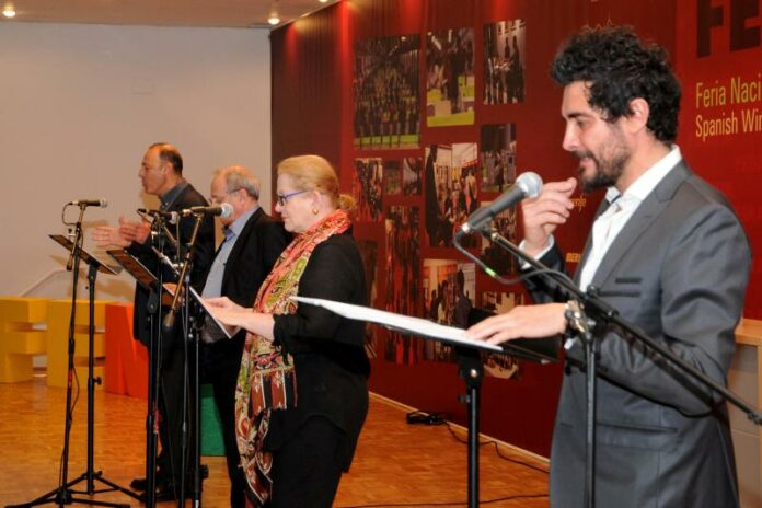«Las palabras del vino» resonaron en el Salon de Acto de FENAVIN en un magnifico recital, con textos de Clara Lair, José Hierro, Borges, Pablo Neruda, Jorge Guillén, Juan Alcaide, Antonio Machado o Pessoa y de la prosa de Emilia Pardo Bazán, Francisco García Pavón y Manuel Juliá en las magnificas voces de los actores José María Arcos, Conchas Cuetos, José Manuel Seda y de Emilio Gutiérrez.