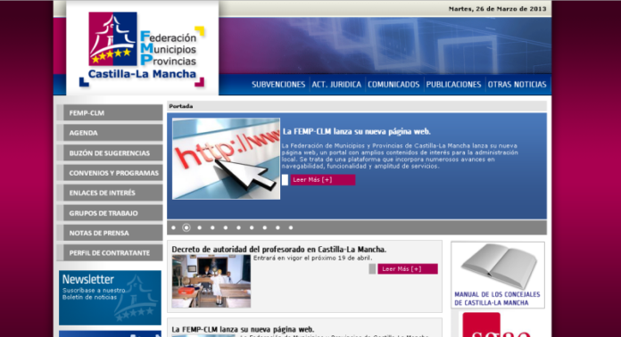 La Federación de Municipios y Provincias (FEMP) de Castilla-La Mancha lanza su nueva página web, un portal con amplios contenidos de interés para la administración local. Se trata de una plataforma que incorpora numerosos avances en navegabilidad, funcionalidad y amplitud de servicios.