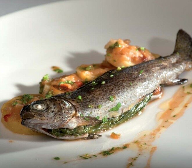 En nuestro país no somos muy aficionados a los pescados de río, al menos en los últimos tiempos, quizá porque podemos disfrutar las excelencias de tres mares en nuestras mesas con la frescura de 24 horas. Tampoco somos un país muy fluvial y con gran variedad de especies. La trucha sin embargo ha gozado tradicionalmente de mucha presencia en nuestras mesas, pero en casi todas las recetas se acompaña de distintos productos que nos ayudan a disimular la carencia de sabor marino que tanto nos gusta en el pescado.