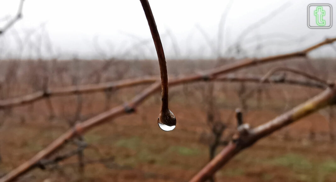 Una gota de rocío mañanero pende en un fino sarmiento, seguramente, justo antes del amanecer llegó a estar congelada, para el mediodía ya habrá desaparecido, cuestión de naturaleza.