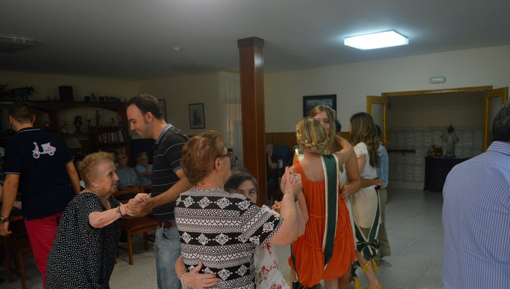 El alcalde y los concejales del Grupo Popular y el de UPyD y las Madrinas 2014, han saludado a los alojados y se han echado unos bailes con los ancianos y las ancianas de la Residencia. Sor Teresa ha contado el chiste de rigor.