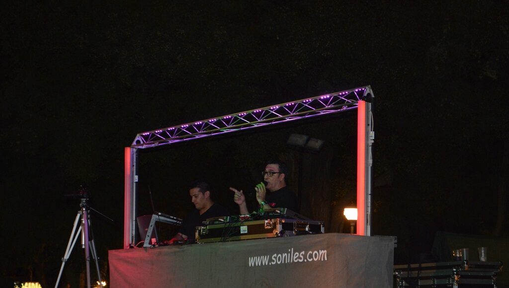 En los Jardines del Parque de la Constitución, Miguel García de “Una canción un recuerdo”, pinchó música de los ochenta. Al recinto fue acudiendo el personal poco a poco, registrándose un buen aforo. El pinchadiscos no dio tregua y fue enlazando canciones de aquella época, mientras el público bailaba y otros, algo más talluditos, escuchaban desde las sillas.