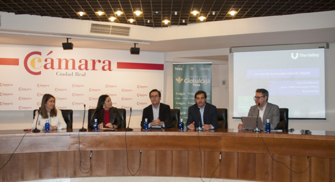 Las claves de la digitalización en el entorno empresarial son el eje de la charla organizada por la Fundación Globalcaja Horizonte XXII, el Instituto de Promoción Exterior de Castilla-La Mancha, the Valley y la Cámara de Comercio e Industria de Ciudad Real para dar a conocer el Programa de Alta Dirección en Digital Business Internacional a una treintena de empresarios y profesionales. En la apertura han estado presentes la directora general de la fundación, Carla Avilés; el director del IPEX, Fernando Laviña; la directora de Formación y partner de The Valley, Ana Delgado; y el director de la Cámara, José María Cabanes.