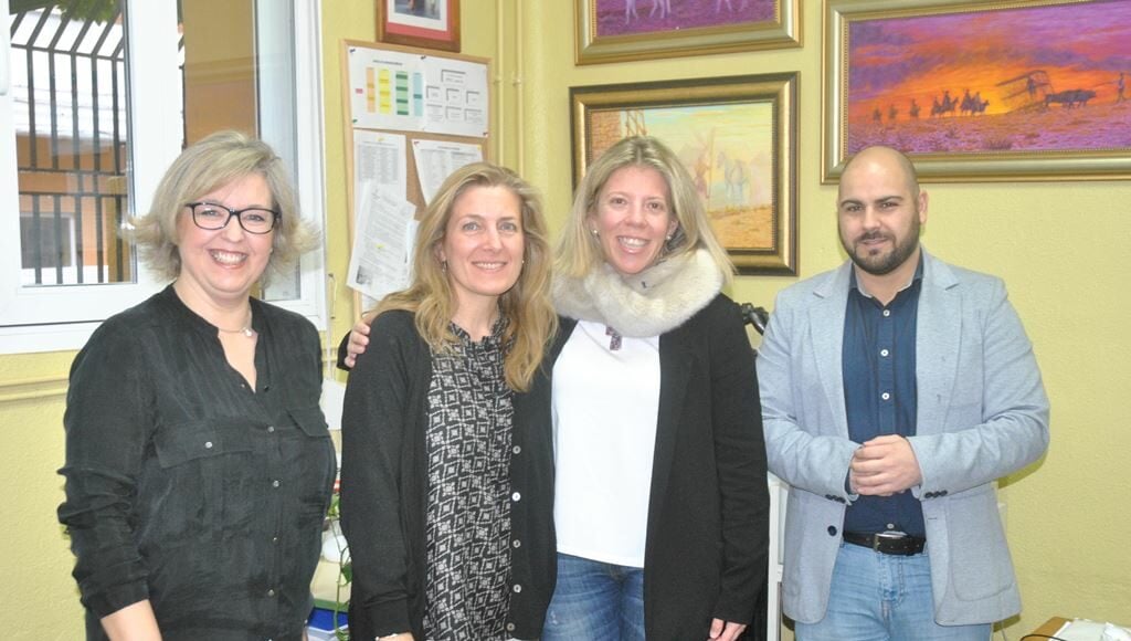 La alcaldesa de Tomelloso, Inmaculada Jiménez, ha visitado esta semana el colegio de educación infantil y primaria Miguel de Cervantes para mantener un encuentro de trabajo con la directora del centro, Ana Martínez y la jefe de estudios, Inmaculada Heredia. La alcaldesa, que estuvo acompañada por el concejal Hacienda Francisco José Barato como representante del Ayuntamiento en el Consejo Escolar del centro, tuvo la oportunidad de conocer sus instalaciones e intercambiar impresiones con el personal directivo sobre la situación y posibles necesidades del centro para mejorar los servicios educativos que presta. El Miguel de Cervantes es uno de los centros históricos de la localidad que celebró por todo lo alto en 2008 su 75 aniversario y cuenta con un buen número de alumnos matriculados al contar con dos líneas por curso.