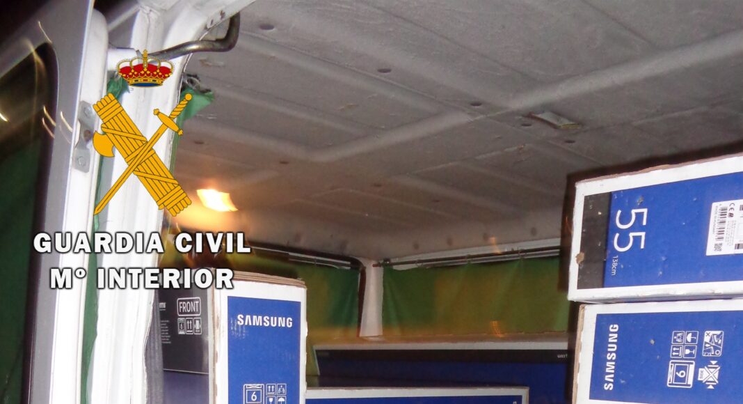 La Guardia Civil comprobó que la furgoneta, donde estos hombres ya habían cargado 21 televisores, había sido sustraída el pasado mes de noviembre en la localidad de Madrid, por lo que se procedió a la recuperación de la carga y del vehículo.