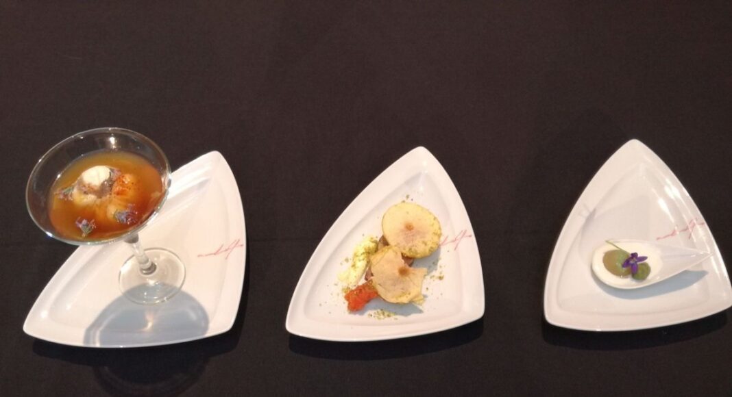 El menú consta de una sopa de jamón con aroma de hierbabuena como primer plato, de segundo un codillo de jamón con tomate asado y mahonesa de chile y manzana y, como postre, una gelatina de cerdo miel con pistachos y yogur.