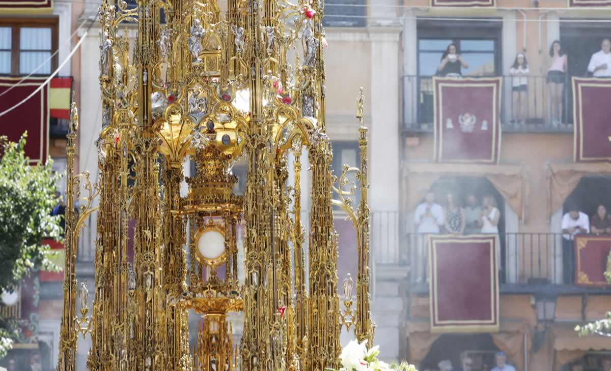 Miles de personas han abarrotado las laberínticas calles del Casco Histórico de Toledo para disfrutar de un Corpus Christi marcado por el calor y contemplar una Custodia de Arfe que, como todos los años, ha brillado más que el sol. Para aliviar los efectos de las altas temperaturas, el Ayuntamiento ha repartido 8.000 botellas de agua.