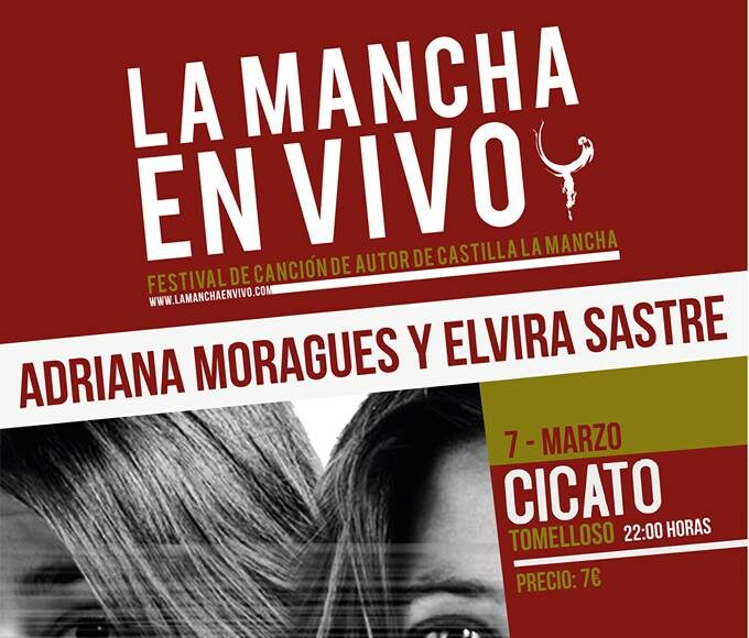 Este sábado la Sala CICATO de Tomelloso, gracias al Festival de Autor de Castilla-La Mancha, La Mancha en Vivo, se llenará de música y poesía a través del diálogo entre los versos de Elvira Sastre y la música de Adriana Moragues. Será a las 22:00 horas y el precio de la entrada es de 7 euros.