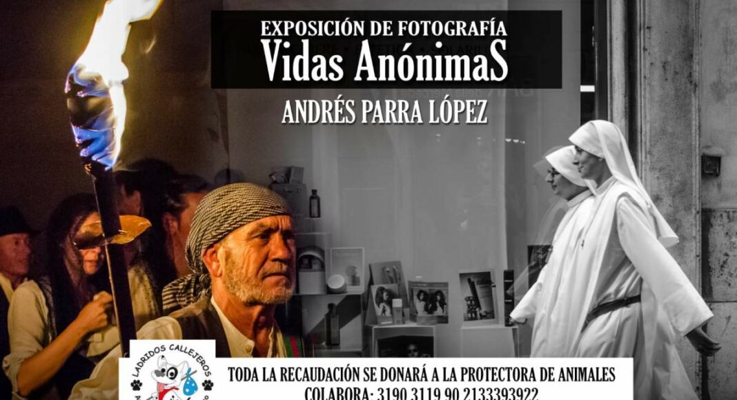Andrés Parra conocido por su labor como fotógrafo deportivo y colaborador del club de fútbol Atlético Tomelloso, muestra en esta ocasión una selección de fotos muy diferente a la que nos tiene acostumbrados. Esta exposición titulada «Vidas Anónimas» recoge una colección de 24 fotografías de personajes totalmente desconocidos para el autor, instantáneas tomadas en su totalidad en las calles de distintas ciudades del mundo: como Berlín, Roma, Florencia, Madrid, etc.