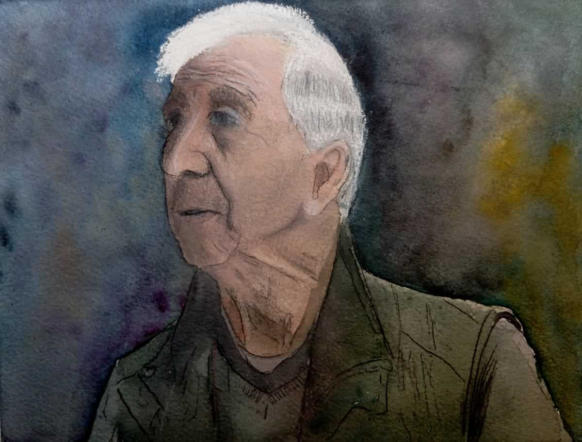 Para pintar este rostro he puesto especial énfasis en su mirada curiosa, la de un hombre activo y socialmente muy reconocido. Un rostro popular y un personaje muy querido y respetado: «Ángel Canuto».
