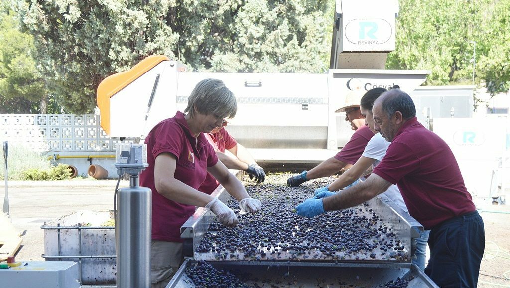 La vendimia, como decimos, comenzó en agosto con la recogida de la variedad chardonnay, con la que se elabora Gran Cueva, el espumoso de Verum. Según explicó Elías López hay que vendimiar con menos azúcar. El vino ya está embotellado, con 10,5 grados, después, en la botella, lleva a cabo una segunda fermentación y aumenta la graduación.