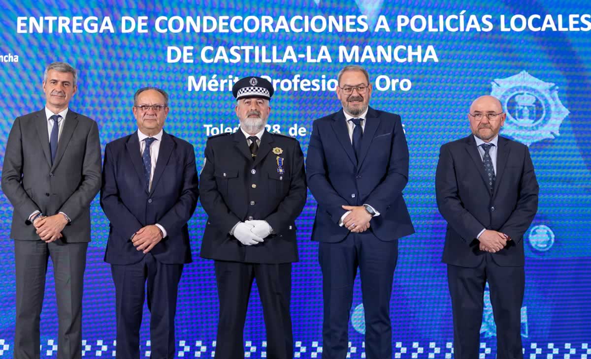 El reconocimiento se entregó este martes, 28 de abril, en el Archivo Regional de Castilla-La Mancha, en Toledo, durante el acto institucional de entrega de medallas al mérito y a la permanencia, coincidiendo con la celebración del Día de la Policía Local de Castilla-La Mancha.