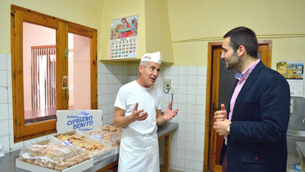 Durante los días previos a la Semana Santa, el concejal de Promoción Económica, Manuel Rodrigo, ha visitado el taller de bollería manchega de Cipriano Benito en la calle Galindo de Tomelloso, un obrador artesanal que lleva endulzando estas fechas tan señaladas desde 1925. Los productos estrella del horno son los rosquillos fritos y las hojuelas, especialidades de las que se siente muy orgulloso Cipriano Benito, aunque también elabora todo tipo de bollería manchega como rosquillos de anís, pastas, galletas o mantecados. Además, a diario fabrican tortas y desayunos.