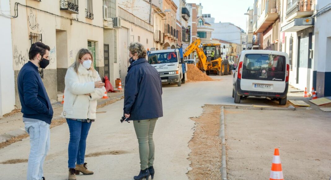 La alcaldesa de Tomelloso, Inmaculada Jiménez, acompañada por el concejal de Obras, José Ángel López y por diversos técnicos de la empresa adjudicataria y del propio Ayuntamiento, ha visitado las obras que se están ejecutando en las calles Monte y Montesa. Se trata de una remodelación integral de estas céntricas y transitadas vías que se está desarrollando con absoluta normalidad tras un tercio de los plazos establecidos ya ejecutados.