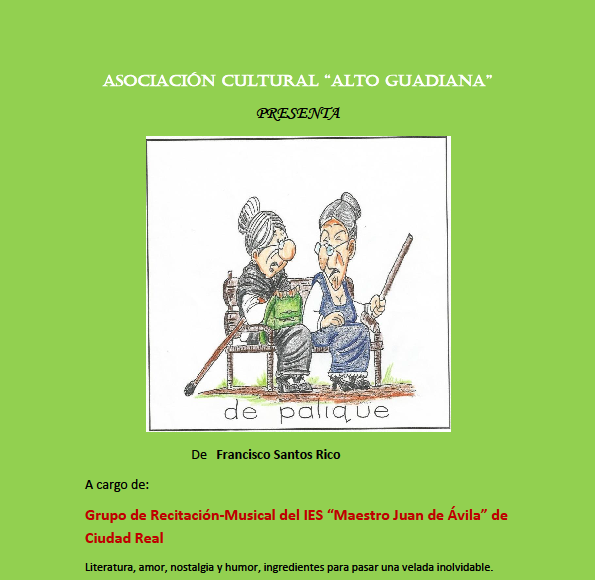 La segunda parte correa a cargo del Grupo de Recitación-Musical del IES “Maestro Juan de Ávila” de Ciudad Real, que escenificarán una reunión de vecinos al fresco.