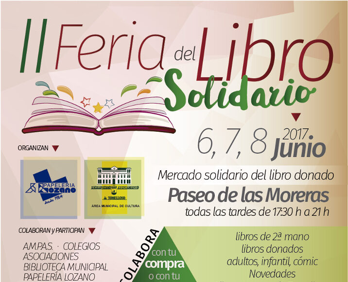 El Paseo de las Moreras de Tomelloso acogerá los días 6,7 y 8 de junio la II Feria del Libro Solidario, organizada por el Ayuntamiento de Tomelloso, a través del área municipal de Cultura y Papelería Lozano.